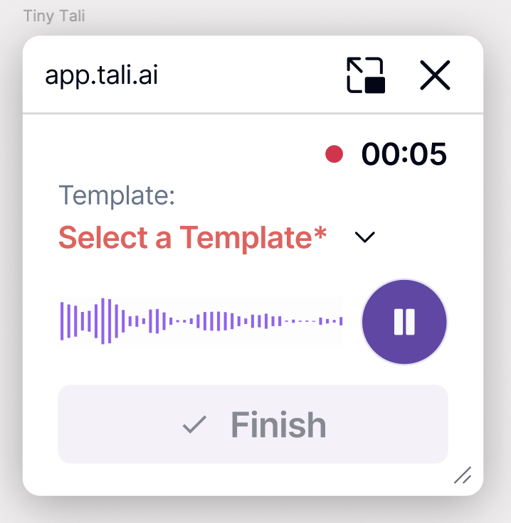 Tiny Tali is available only when using the Tali web app at https://app.tali.ai.