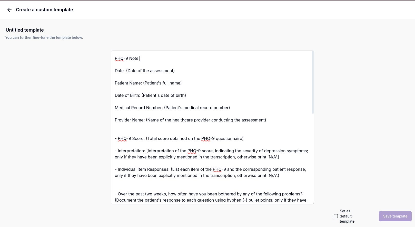 4. In the text field, enter the title of your template. E.G. "PHQ-9 Note"