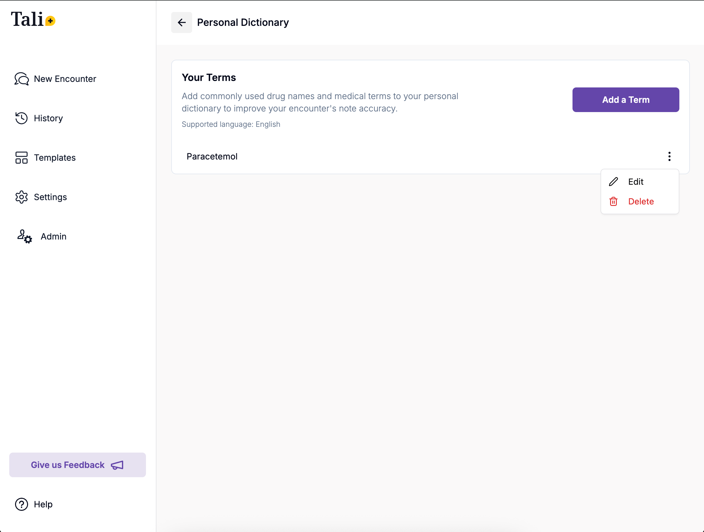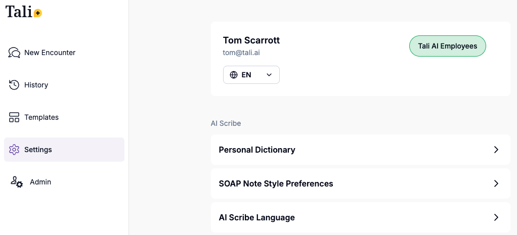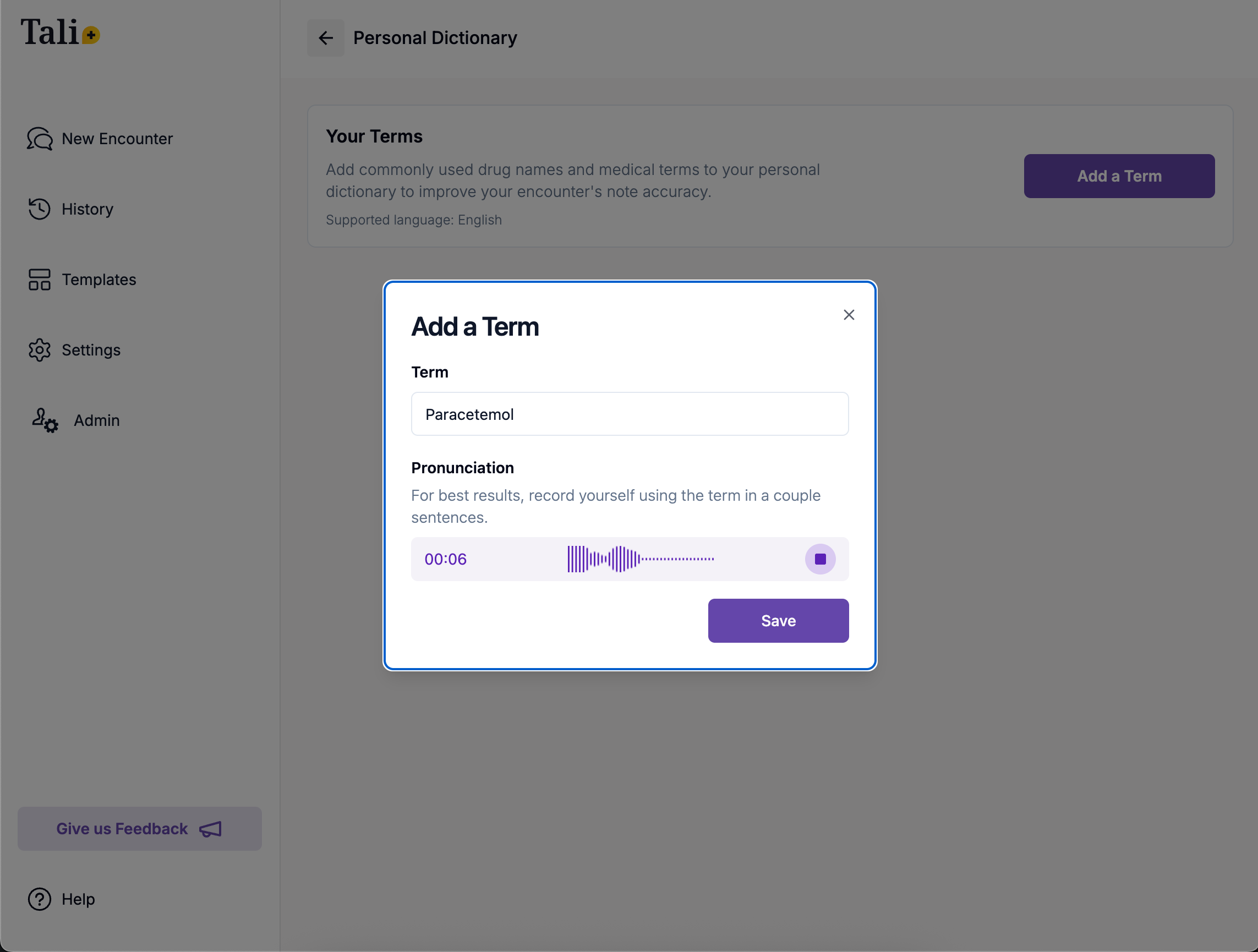 If there are common words or phrases which require you to edit often in your notes, you can add them to your own Personal Dictionary. This allows Tali to gradually learn over time one or more of your commonly used names to save you time editing this post-encounter.