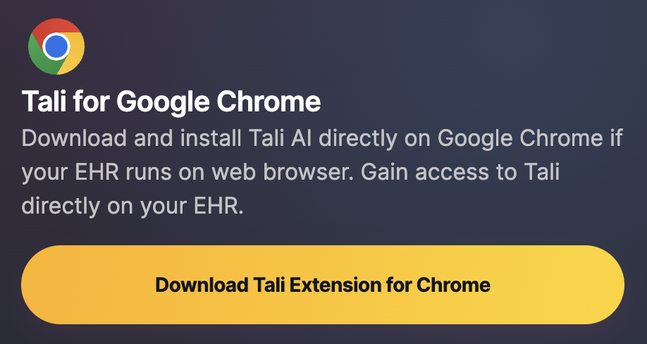 From the Tali Installation Page, select 'Tali for Google Chrome' and click 'Download Tali Extension for Chrome':
