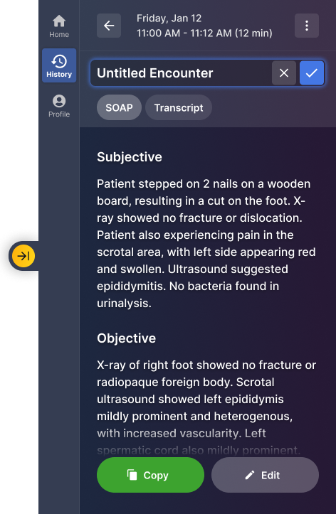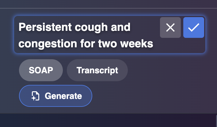 Once you have clicked the Done button to generate the note, you'll see be presented with the note generation