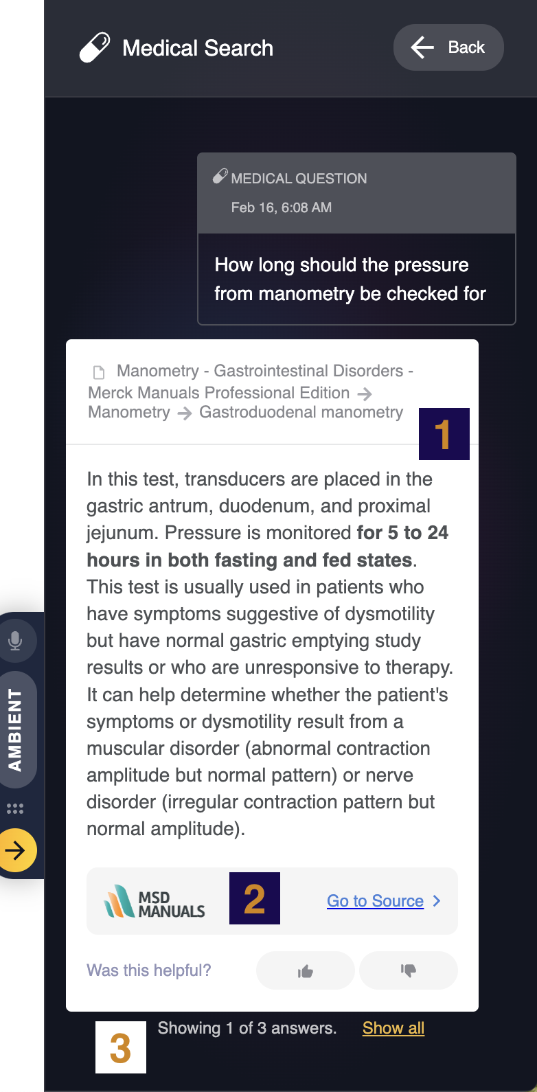 If the Medical Search identified more than one answer from our sources, you will have the option to view the other answers as well.