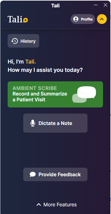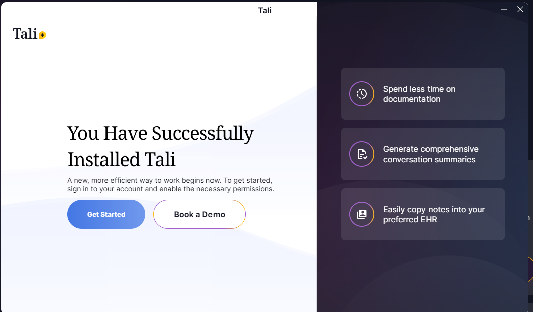 After a successful login, the Tali App will open expanded on your desktop and it's ready to use