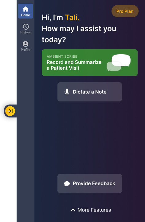 The first thing you'll notice is we've moved the Profile, Home and History buttons to the side of the sidebar. These will stay visible as you do different things with Tali, so they'll always be available to you: