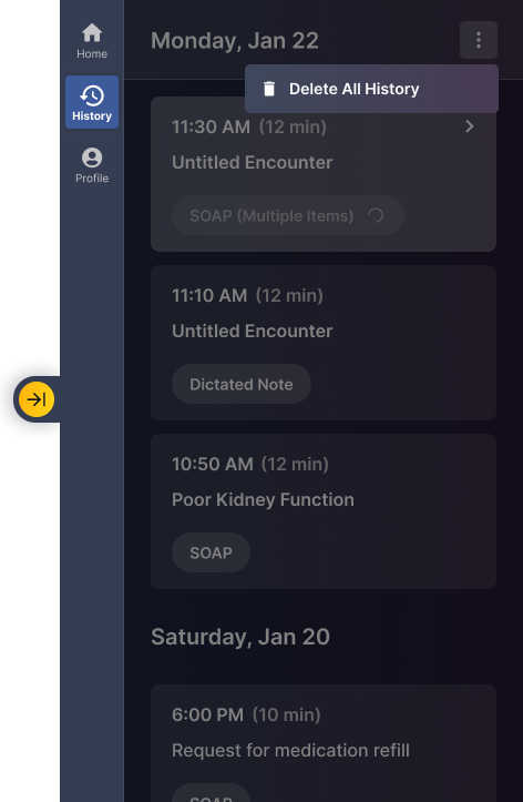The second thing that is actually the most important: we've created an encounter grouping of all the activities associated with one visit, so that you can find them and work with them more easily. This encounter view provides, we hope, a more intuitive organization of notes within the History view. It is also a more scalable design for some features we have planned for the not-to-distant future: