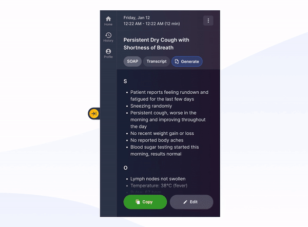 Once generated, edit, copy and save your new notes to your EHR as you normally would
