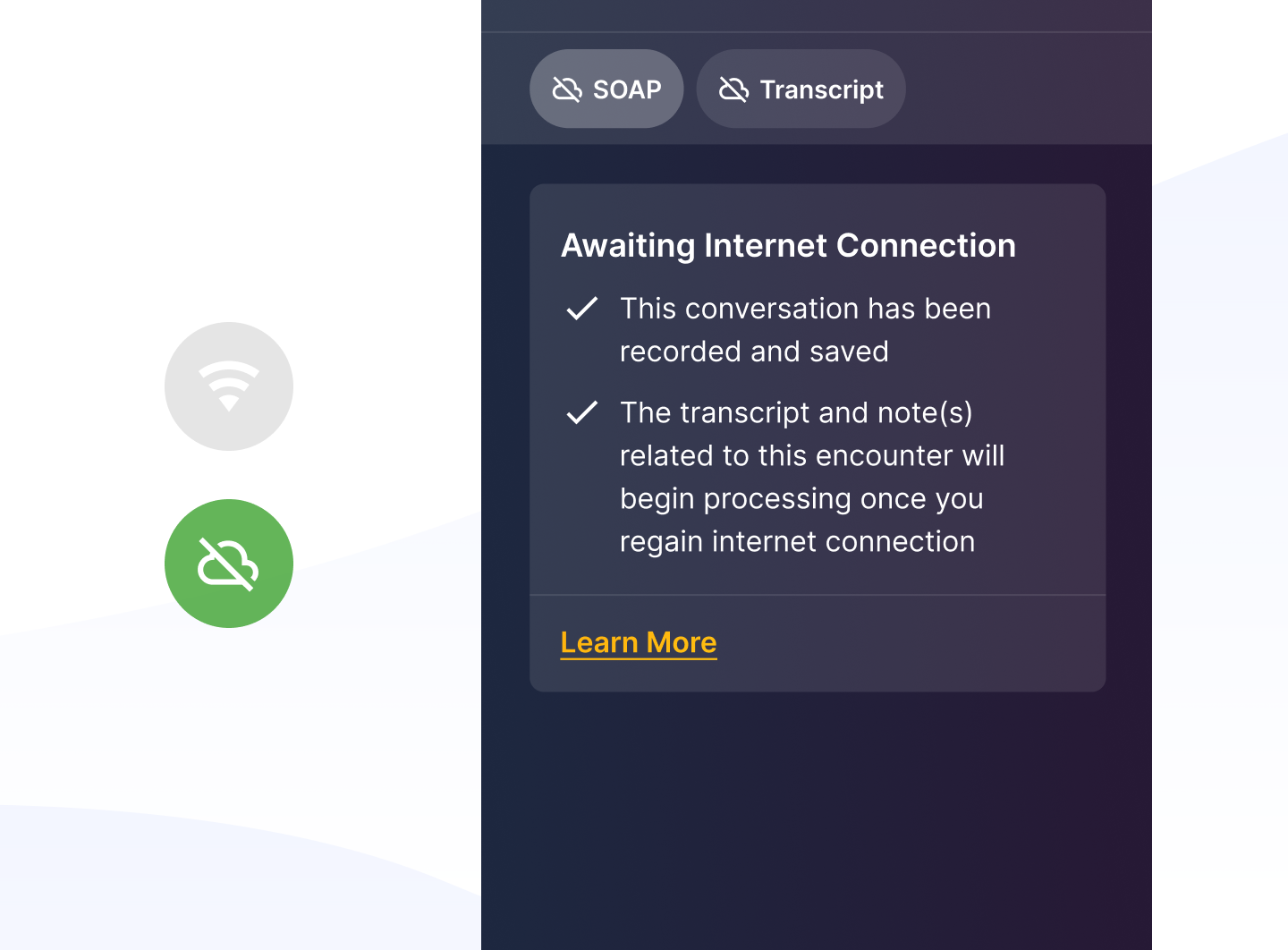 Never let bad wifi or network coverage stop you from recording and safely capturing your note transcript.