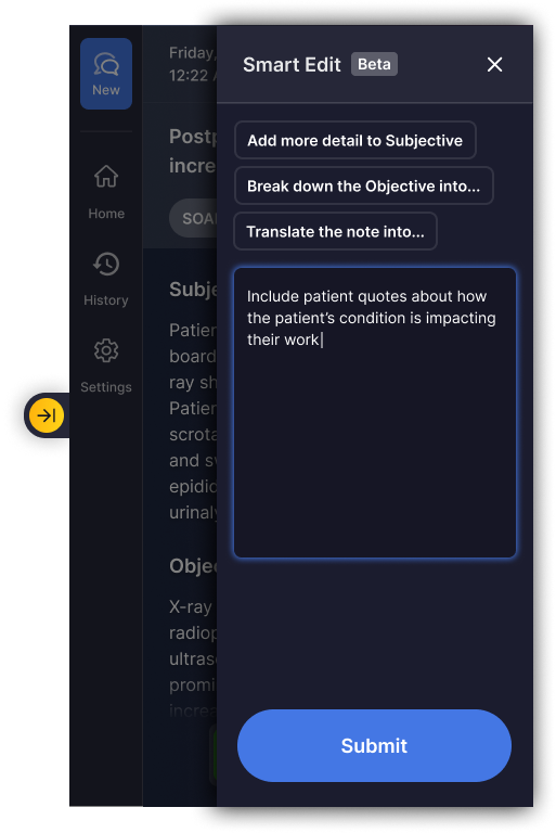 Select either a pre-made suggestion to edit your note, or type in the text box what edits you want made to the note