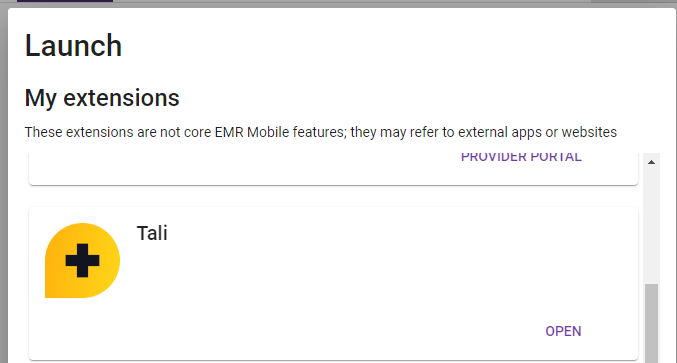 Launch Tali from a patient's chart.