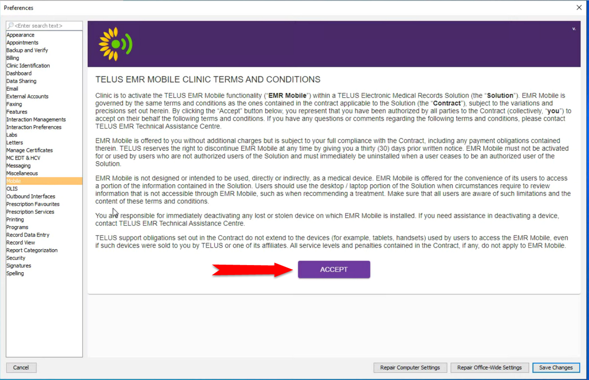 If required: Enabling Mobile Terms and Conditions