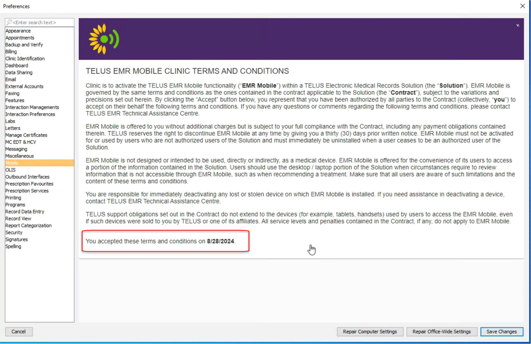 When you successfully saved the changes it will display when you accepted the terms and conditions.